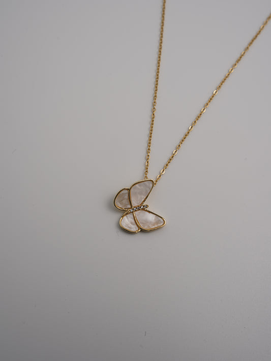 Butterfly and Floral Pendant Stainless Steel Necklace