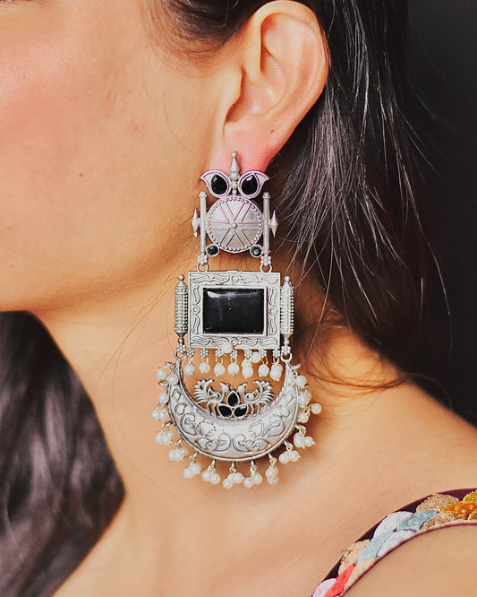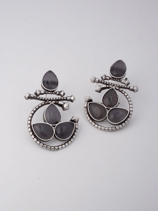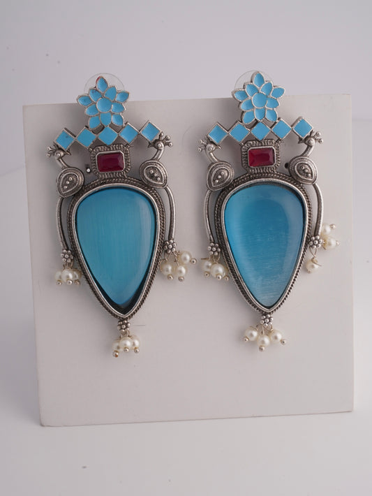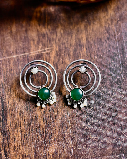 Bahubali Brass Earrings with Monalisa Stone and Pearls