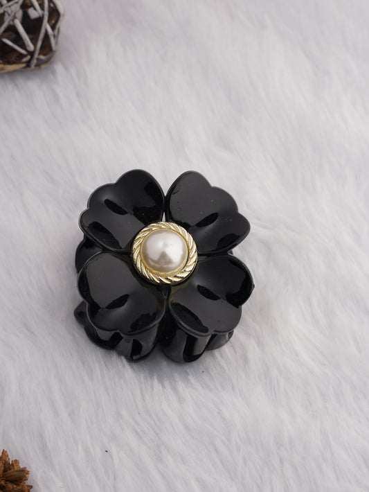 Medium Flower Shape Hair Claw Clips with Pearl Accent, Premium Quality